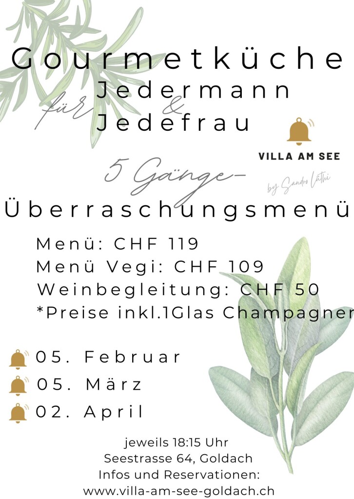 Als neuer Pächter und Küchenchef werde ich im neu renovierten Speiserestaurant «Villa am See» in Goldach Akzente setzen und für sämtliche Geniesser und solche, die es werden wollen, eine Oase für Genuss initiieren –Ich freue mich sehr, Sie persönlich begrüssen und kulinarisch verwöhnen zu dürfen!